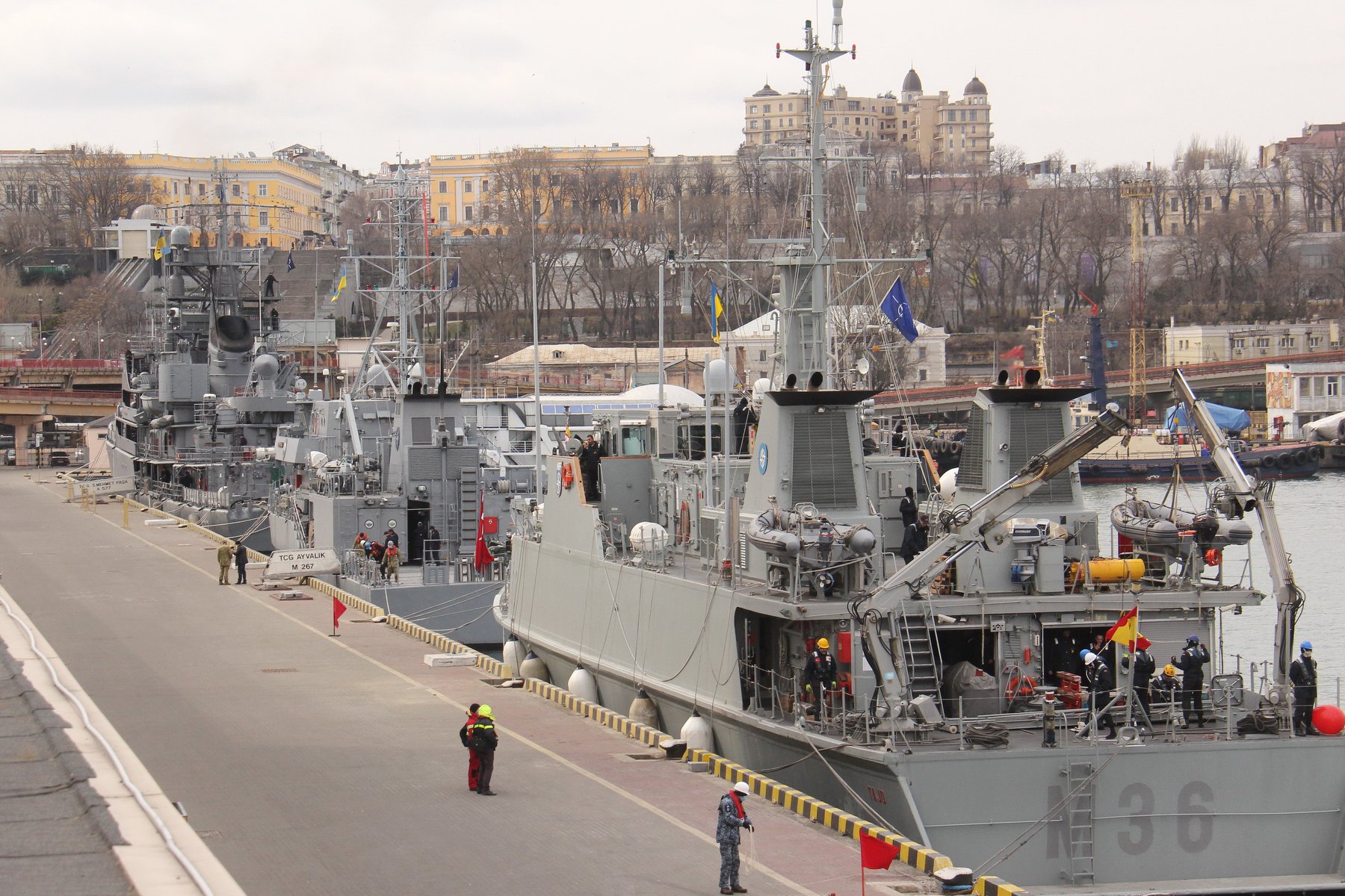 В акваторию Одесского морского порта сегодня зашли четыре корабля Второй постоянной противоминной группы НАТО SNMCMG2. Все они пришвартовались у одного из причалов Одесского морвокзала.