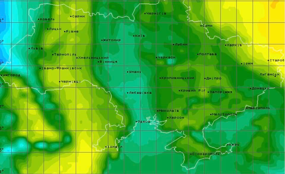 В то же время завтра от Киевщины через Черкасчину до Одесчины протянется язычок несколько более свежего воздуха, что видно на карте.