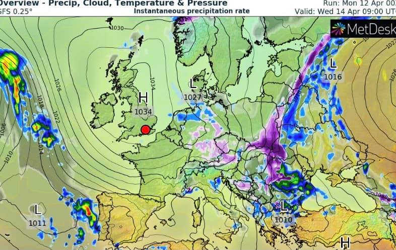 С запада Европы к нашим западным областям начнет подходить мокрый снег, но он более возможен поздно вечером или 14 апреля.