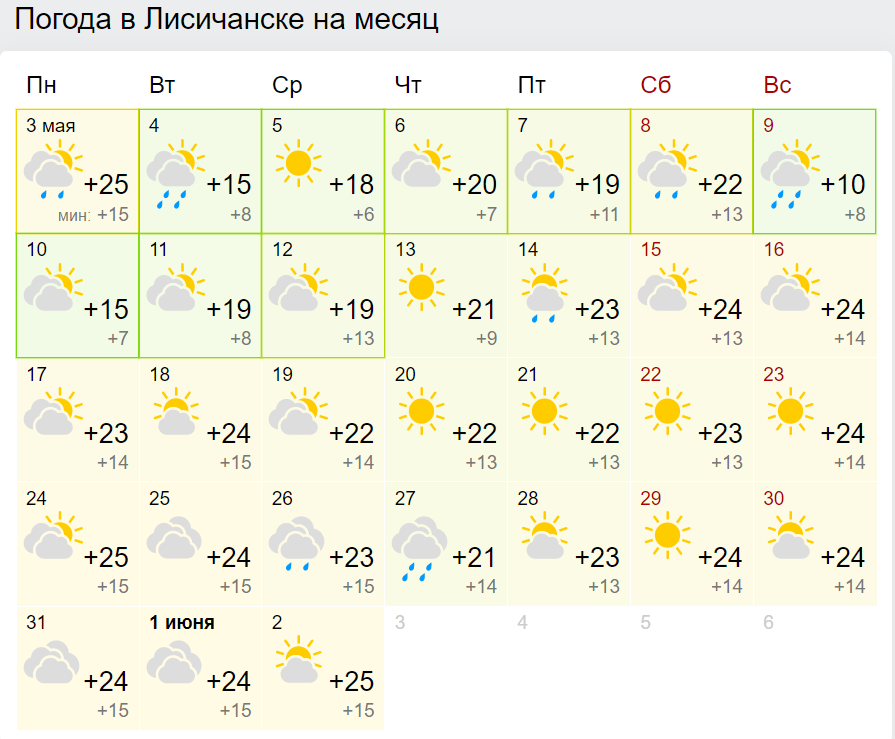 Синоптики уже дают предварительные прогнозы погоды в Украине на месяц. По данным сайта Gismeteo, текущая неделя будет прохладной и дождливой. Периоды дождей и прояснений будут чередоваться до конца мая.