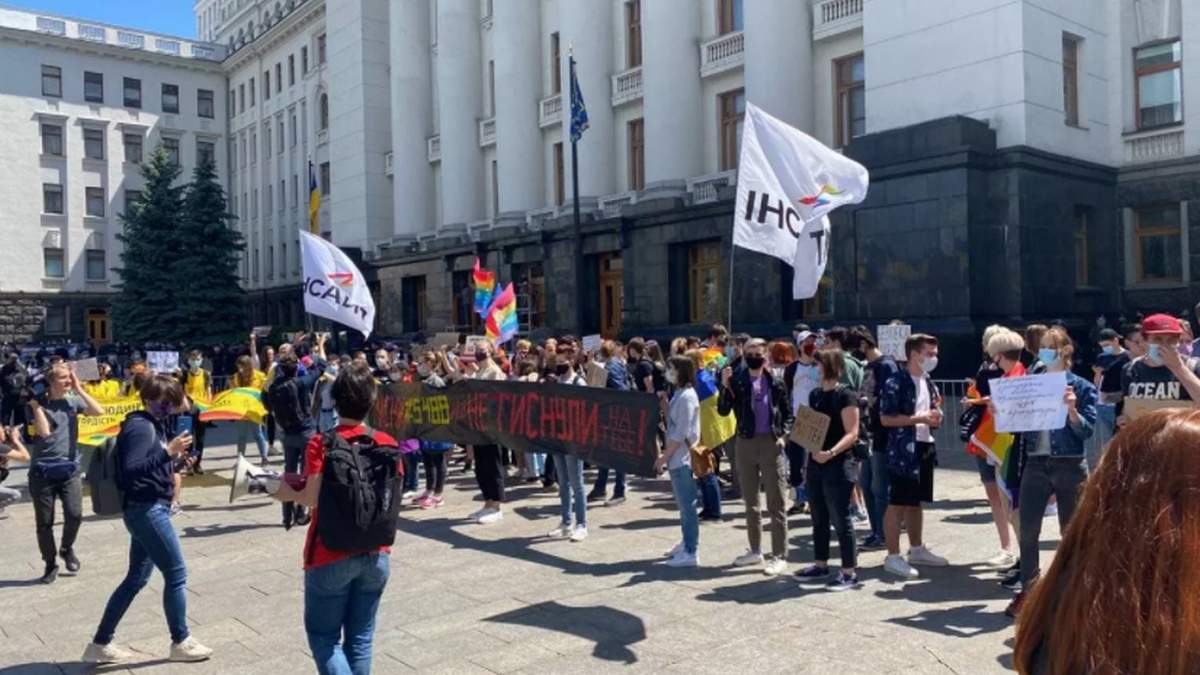В субботу, 5 июня, под зданием Офиса президента в Киеве состоялся митинг представителей ЛГБТ. Они требовали принять законопроект №5488 о противодействии дискриминации, зарегистрированный в парламенте.
