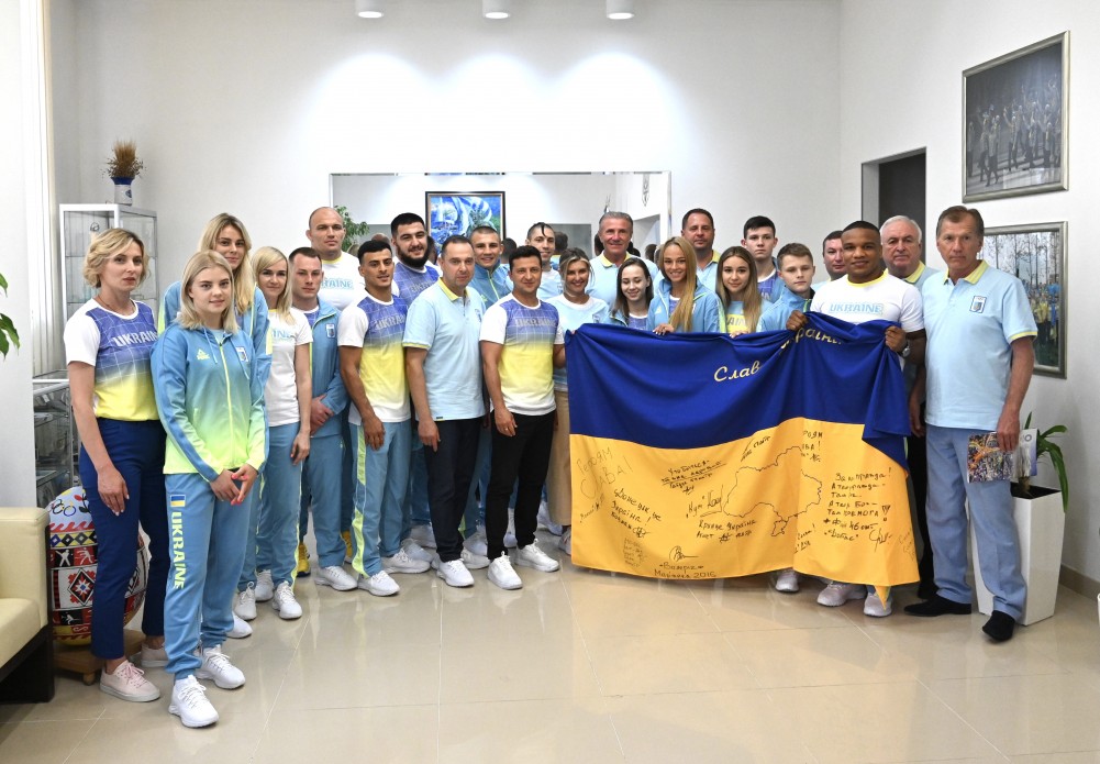 Глава государства также передал спортсменам флаг Украины, подписанный военными, которые в разные годы защищали нашу страну на фронте.