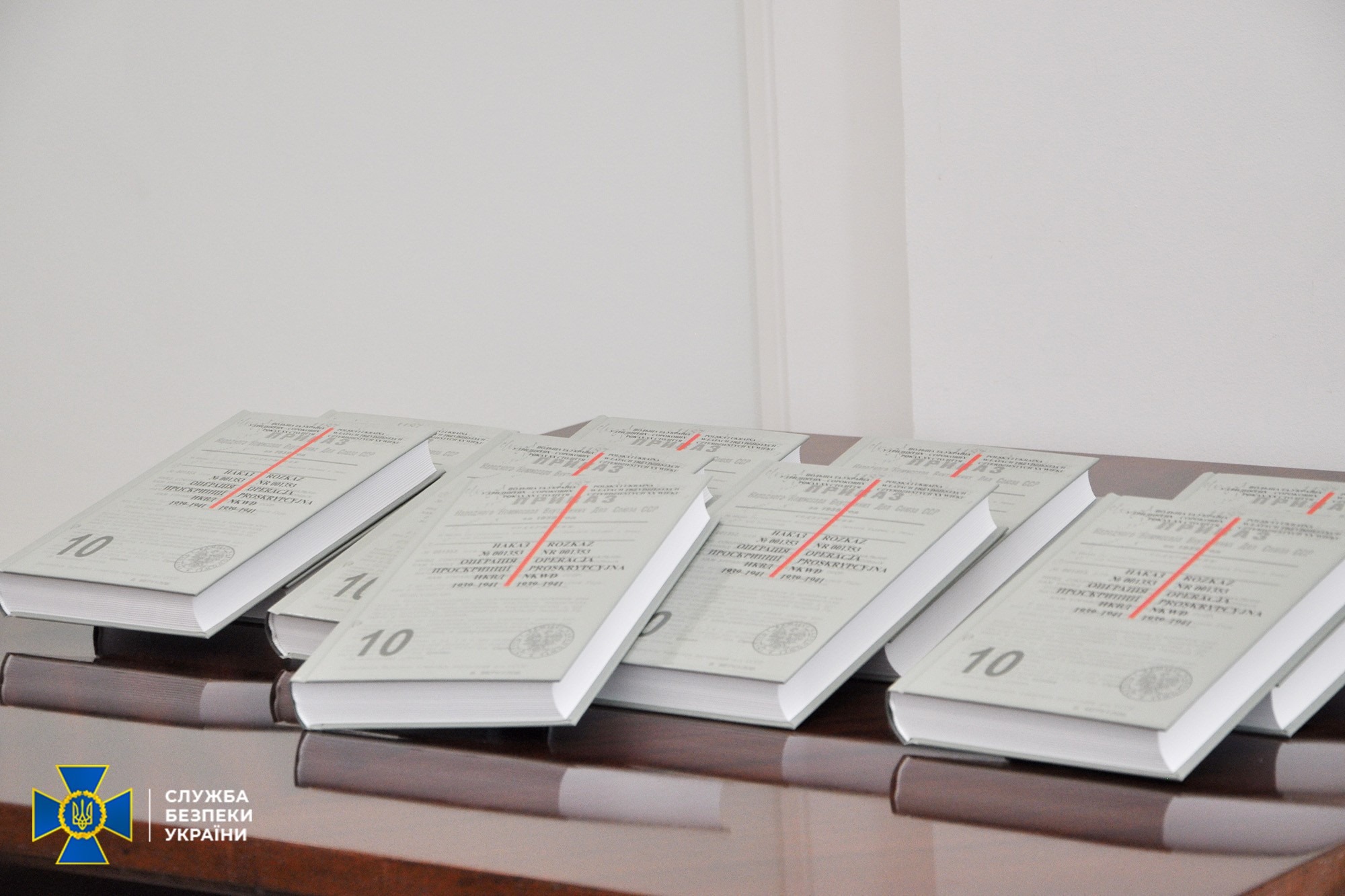 «Это уже 10-й, юбилейный, том серии. Он называется «Приказ № 001353. Операция проскрипции НКВД 1939-1941». Выпуск вышел в 2020 году и уже успел привлечь немалое внимание мирового сообщества», - заявил директор Отраслевого государственного архива СБУ Андрей Когут.