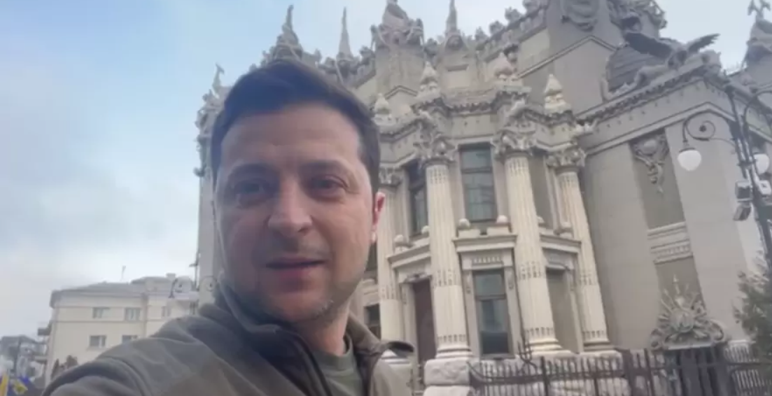 Зеленский находится в Киеве. Он записал видеообращение на Банковой на фоне знаменитого "Дома с химерами" - одного из зданий Офиса президента, что напрочь опровергает слухи о его бегстве из Киева.