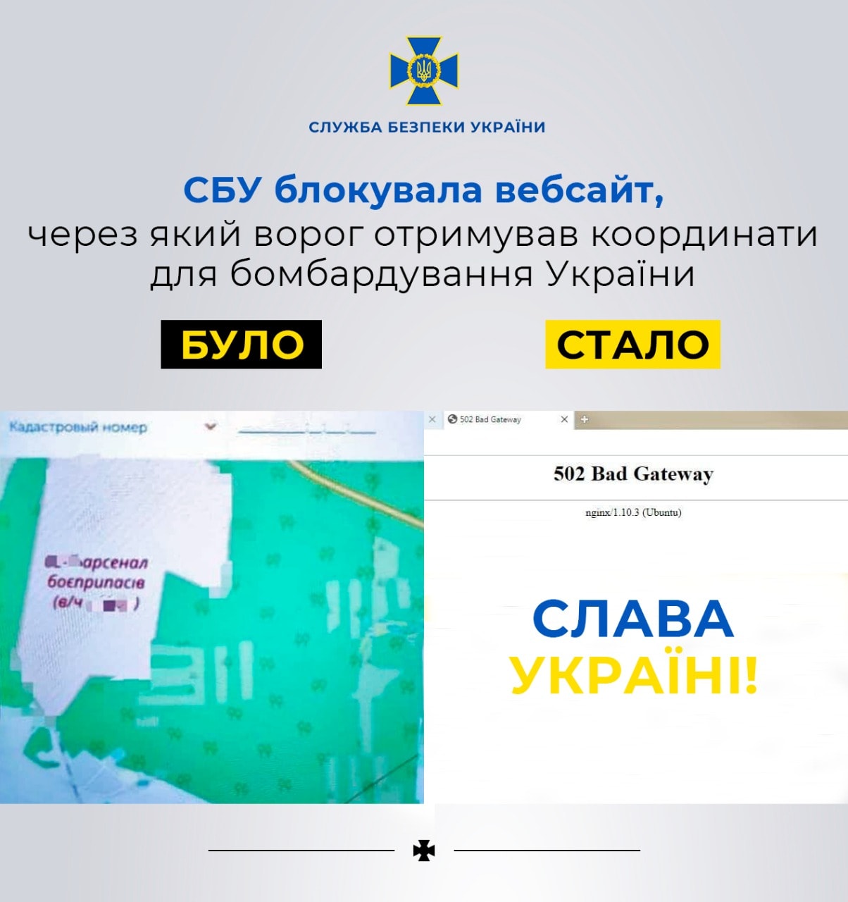 Служба безопасности Украины блокировала веб-сайт, через который враг получал координаты для бомбардировок нашей страны.