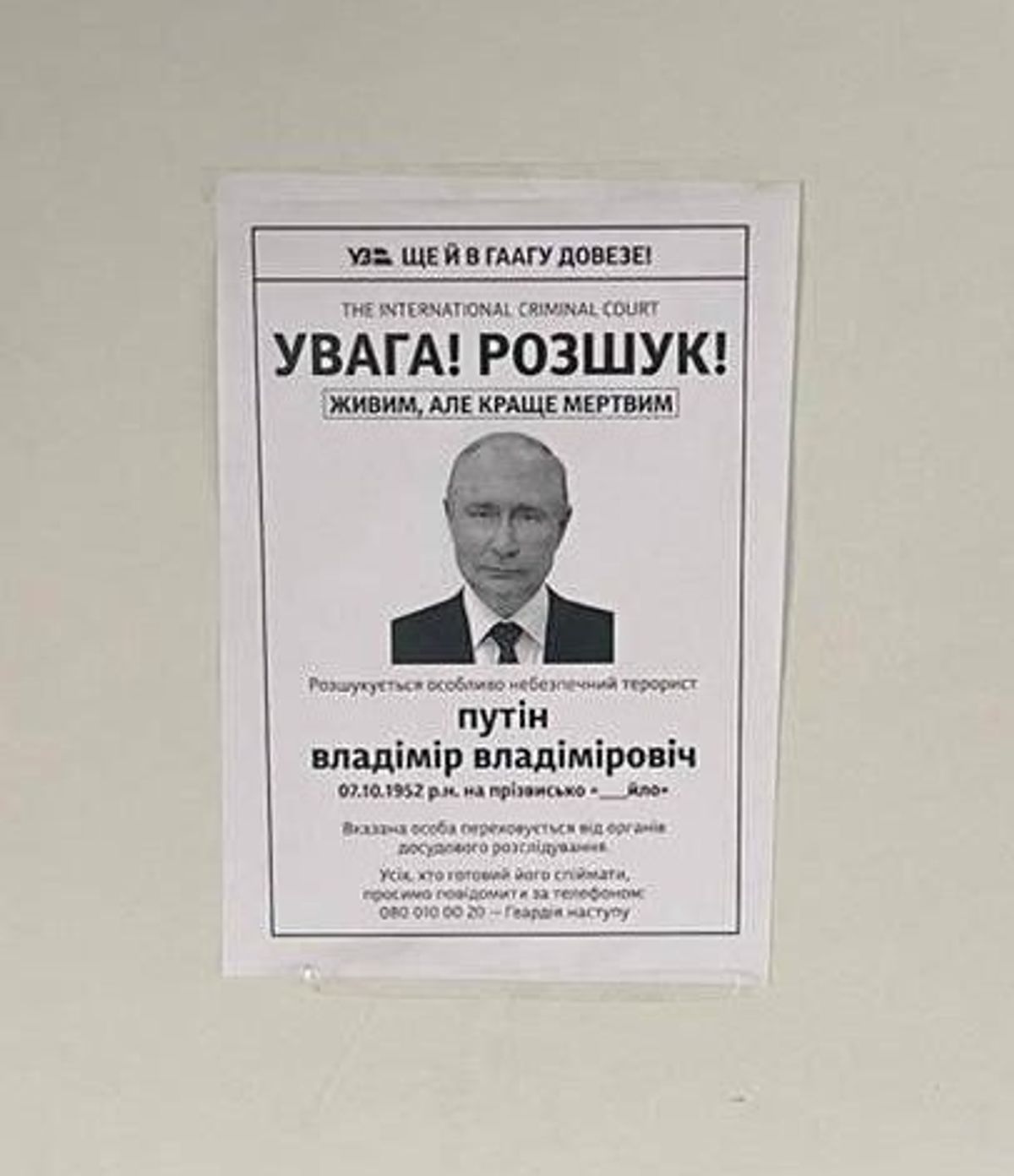 В объявлениях указано, что Путина можно взять живым, но все же лучше мертвым. "Поэтому сдерживать себя при задержании нет потребности".