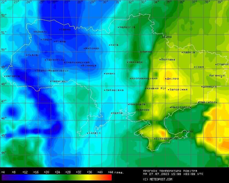 - в центральных +23 в Винницкой области, +33 в Днепре, остальные +25+30;