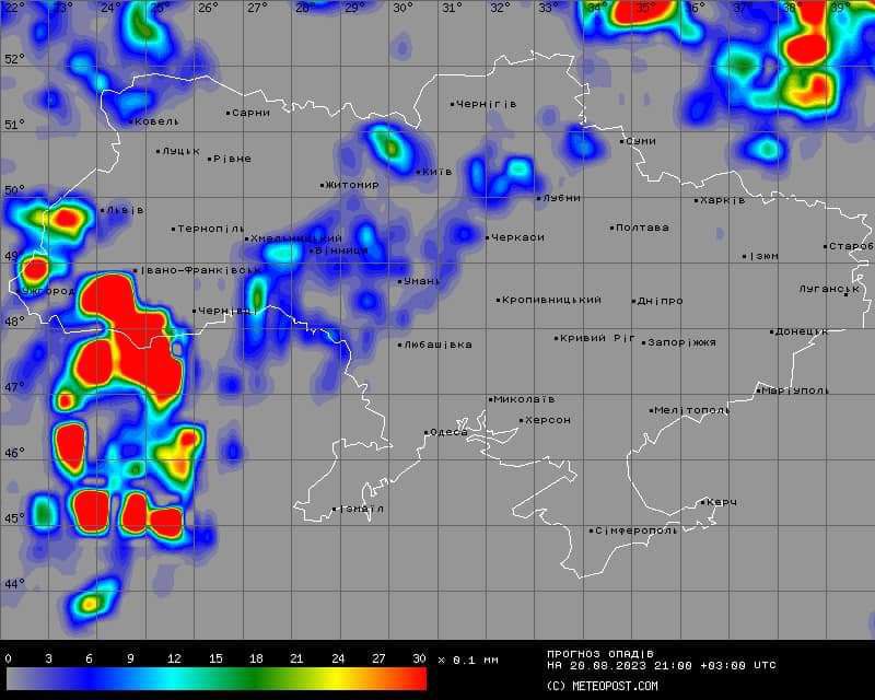Завтра в Украине предполагаются дожди с грозами. Среда будет горячей. Местами столбик термометра покажет 32-36 градусов.