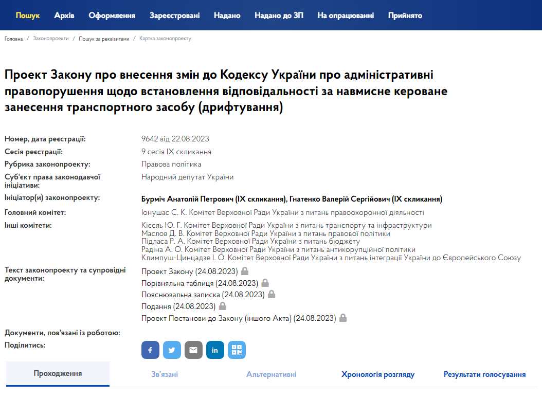На сайте Верховной Рады зарегистрировали законопроект об установлении ответственности за умышленное управляемое внесение транспортного средства - дрифтование. Если закон примут, нарушителям будет грозить штраф до 17 тысяч гривен.