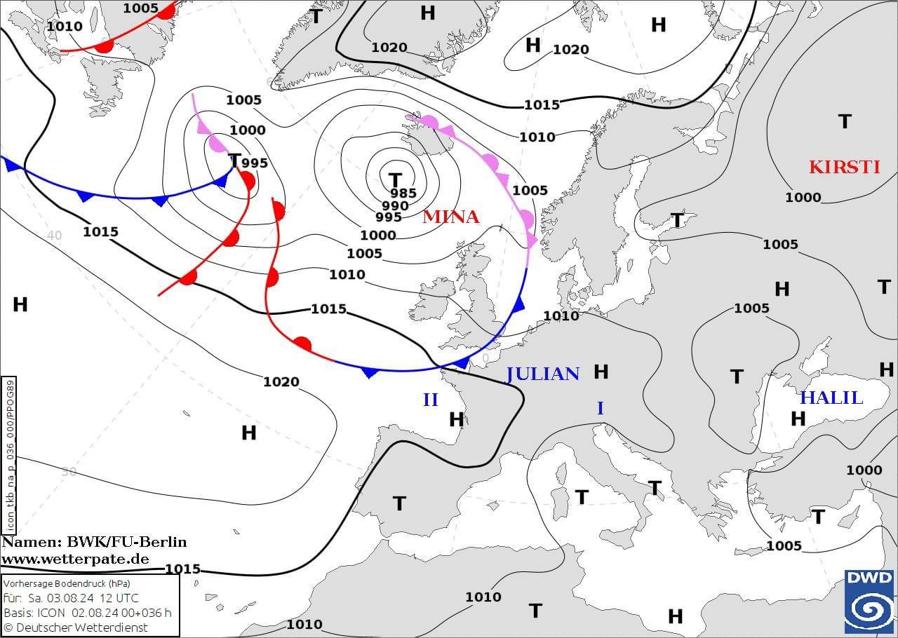 Завтра, в центральную часть Европы придет антициклон Julian, над Черным морем - антициклон Halil, а между ними присоседится небольшой циклончик имени.