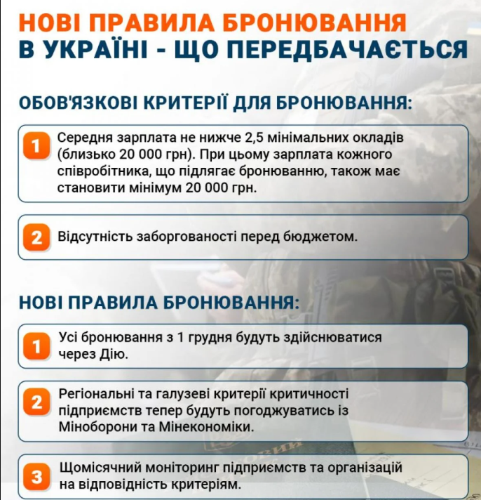 Украина усиливает меры по мобилизации - с конца мая кардинально изменяются условия сохранения брони для работников предприятий. Теперь быть сотрудником "важной" компании недостаточно - статус критически важного нужно будет не только подтвердить, но и ежемесячно доказывать документально.
