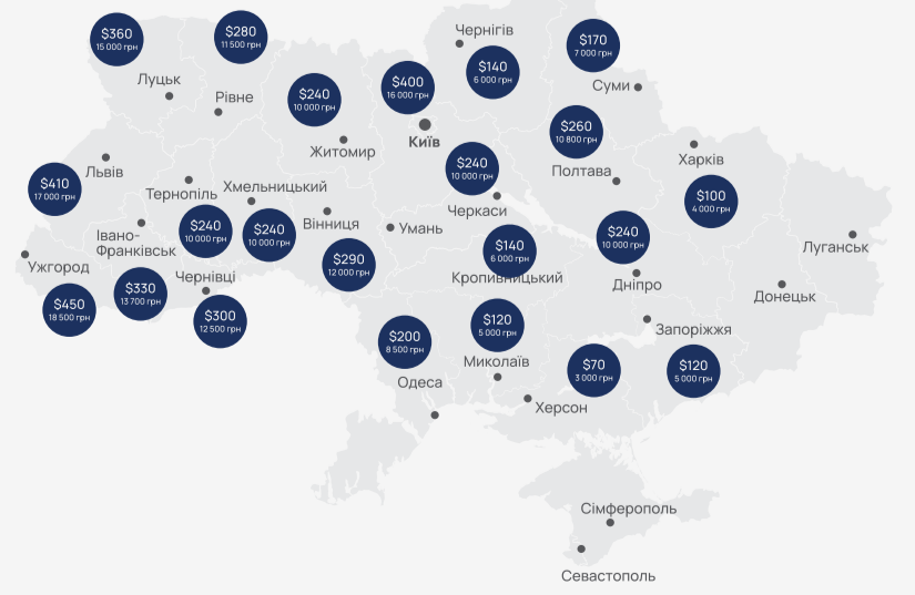 - Харьков - 4 000 гривен,