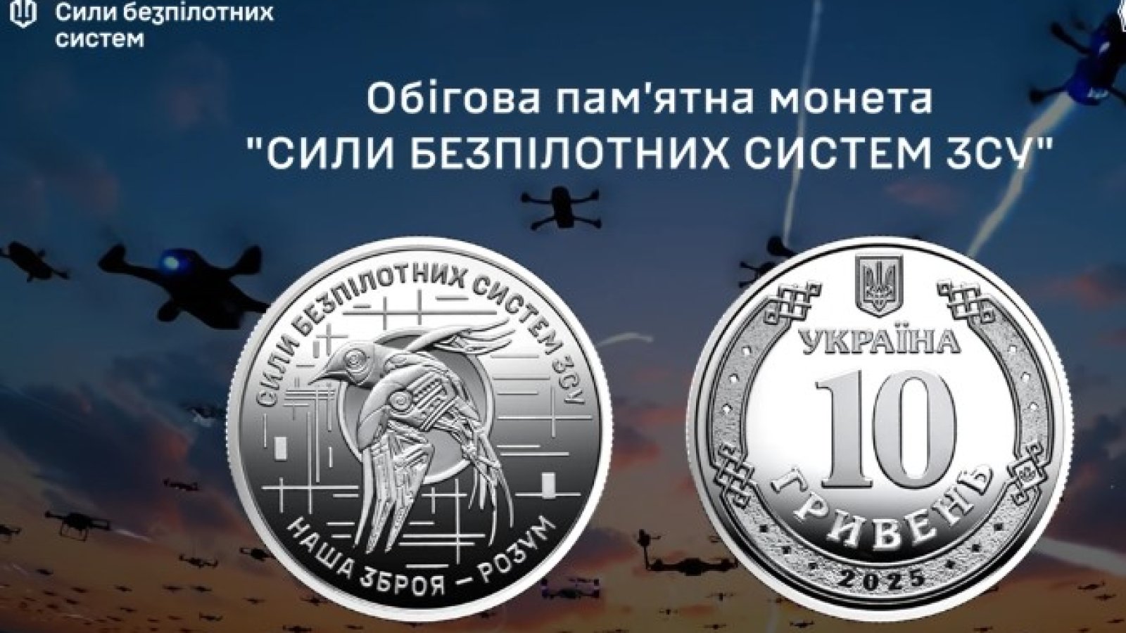 В честь Сил беспилотных систем Вооруженных Сил Украины Национальный банк представил новую оборотную памятную монету, которая продолжает серию "Вооруженные Силы Украины".