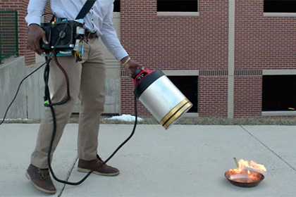 Студенты Университета Джорджа Мейсона сконструировали аппарат на собственные деньги (около 600 долларов). Он состоит из собственно огнетушителя и рюкзака с элементами питания. Сначала студенты экспериментировали с большими колонками и высокими частотами, но в итоге лучший результат показали басы: частота в 30-60 герц.