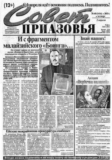 Российская Газета «Совет Приазовья», издаваемая в Краснодарском крае, опубликовала статью, в которой говорится, что «пассажирский авиалайнер сбили военные национальной армии Украины». Обломок самолета был передан «в благодарность за доставленные продукты, одежду и медикаменты для жителей ДНР».