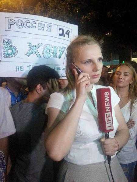 Активисты в Армении пикетировали включение журналистки одного из российских телеканалом гневным плакатом.