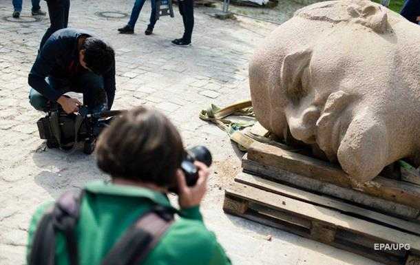В свое время сцену демонтажа, когда огромный кран поднимал эту гранитную голову, высеченную скульптором Николаем Томским, показали в фильме "Good Bye, Lenin!".