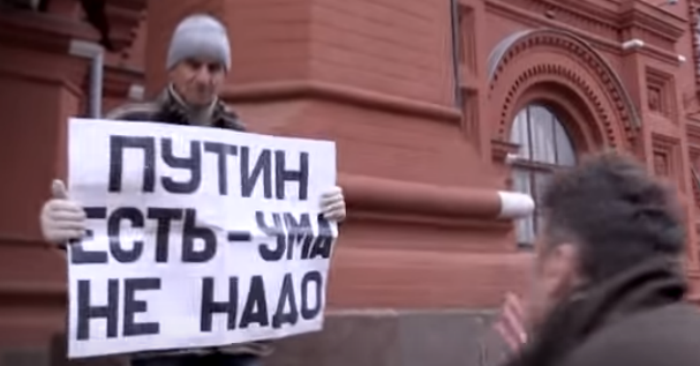 Пенсионер мирно стоял с плакатом «Путин есть – ума не надо».