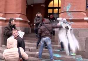 В Москве сторонники политики действующего президента РФ Владимира Путина напали на мужчину, стоявшего в одиночном пикете с плакатом "Путин есть - ума не надо". Неизвестные вели себя агрессивно: облили 75-летнего активиста краской и высыпали на него муку.