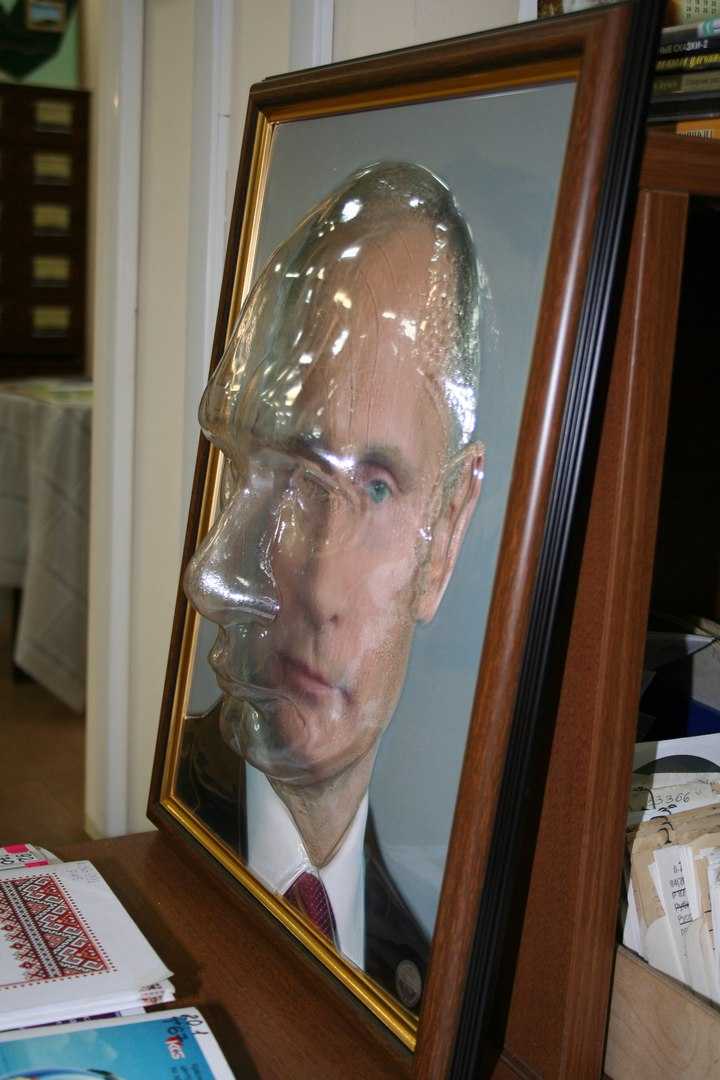 Местные СМИ пишут, что рельефный портрет Путина выполнен в анфас из полимерных материалов и детально повторяет черты его лица. Его представили в рамках Всероссийской акции "Ночь искусств", которая проходила в указанной библиотеке. Это заведение является центром социокультурной реабилитации инвалидов по зрению.