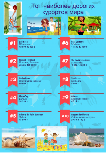 Однако, времена меняются, и цифрой в 10 000 долл. уже никого не удивишь. За семь лет последовательно сменились несколько лидеров этой гонки: Майами, Дубаи. Но даже их 15 тысяч долларов бледнеют перед нынешними лидерами: Багамами с островом MushaCay (24 750 долл. за ночь), виллой Брэнсона на Виргинских островах, сдающейся за 30 000, и удивительным испанским островом Isladesa Ferradura с его ценами, эквивалентными стоимости покупки виллы у моря.