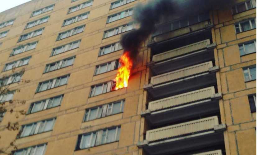 Несколько пожарных расчетов приступили к тушению пожара, начавшегося на 9-м этаже 17-этажного общежития, принадлежащего РХТУ им. Менделеева и расположенного по улице Вилиса Лациса.