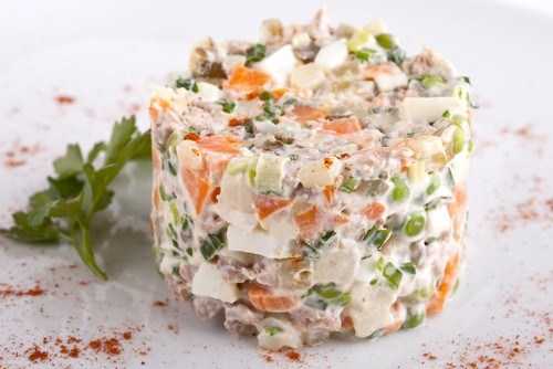 Салат оливье в вафельном стаканчике получил название «Оливьеженое». Купить этот «шедевр» кулинарии можно, например, в Измайловском парке Казани в кафе «Русс Роллз».