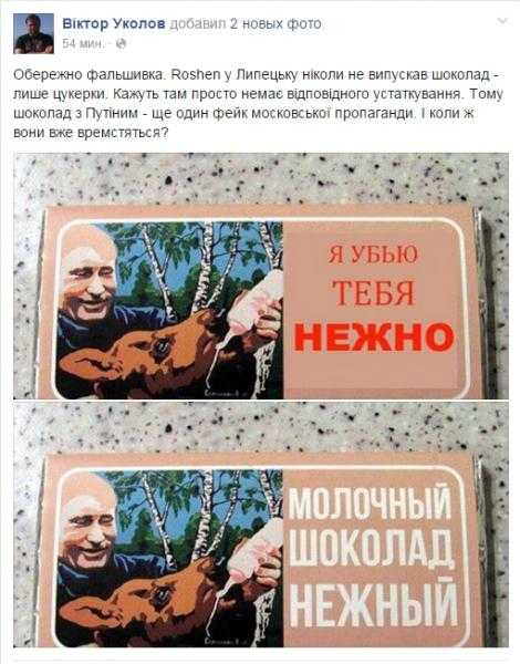 "Roshen в Липецке никогда не выпускал шоколад - только конфеты. Говорят там просто нет соответствующего оборудования. Поэтому шоколад с Путиным - еще один фейк московской пропаганды", - написал он.