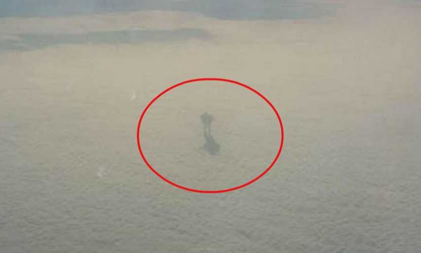 Во время полета мужчина фотографировал необычные виды из иллюминатора. Через несколько минут полета он увидел на облаках загадочную серую фигуру, напоминающую человека с головой, руками и ногами.