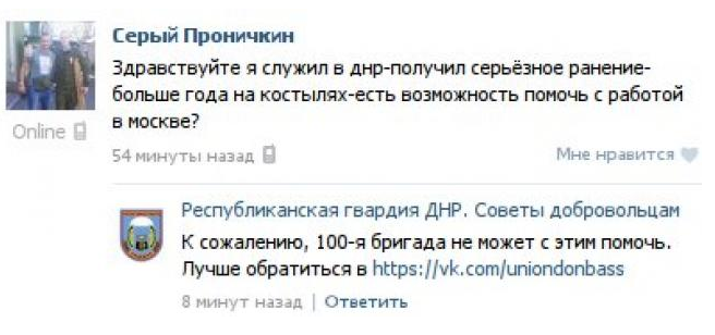 “Я служил в "днр". Получил серьезное ранение. Больше года на костылях. Есть возможность помочь с работой в Москве?”, - такими запросами сейчас пестрят паблики боевиков “л-днр”.