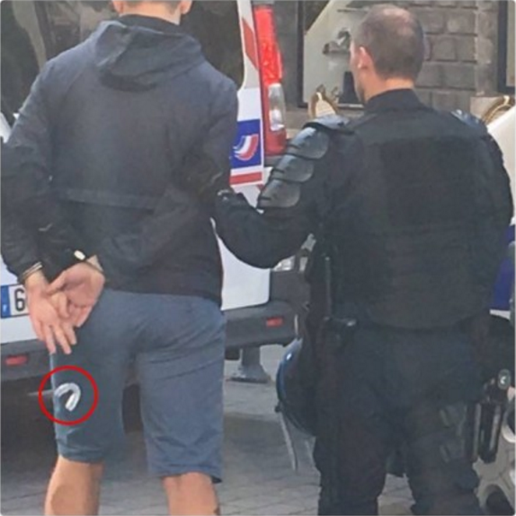 На снимке видно, как во время задержания один из россиян, незаметно для французских полицейских сбрасывает капу.