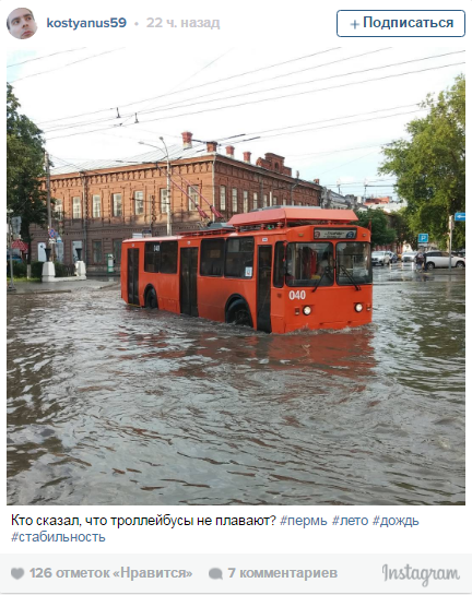 Из-за сильного ливня в российском городе Пермь дороги в центре превратились в реки, в которых даже можно плавать.