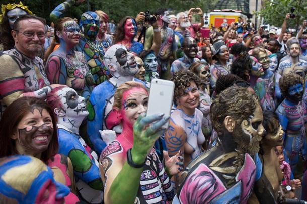 Участниками мероприятия стали более сотни моделей, которые обнажились для нанесения на них красок прямо на улицах острова Манхэттен.