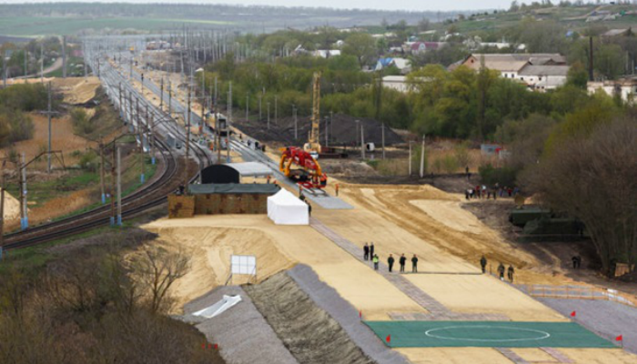 Замминистра напомнил, что строительство железнодорожного полотна в обход Украины началось в прошлом году. Его завершение запланировано на 2017 год. Булгаков добавил, что строительство железной дороги в течение всего периода идет с опережением графика. Это, по его словам, стало заслугой железнодорожных войск и общественных специалистов, которые проделали отличную работу и проявили слаженность в действиях.
