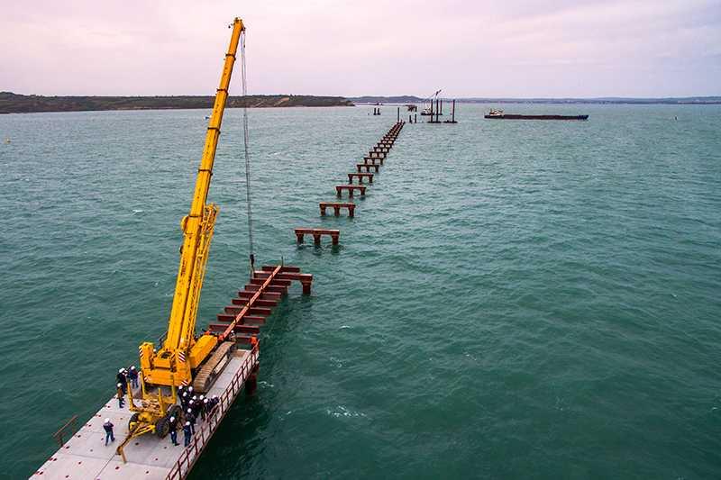 В YouTube опубликовали видео на котором показан процесс строительства моста через Керченский пролив.