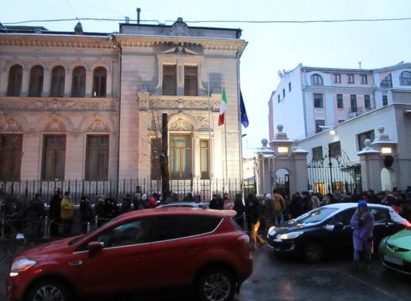 В итальянское посольство на продуктовую ярмарку километровый хвост выстроился.