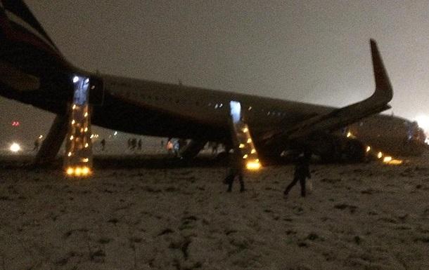 В Калининграде (Россия) пассажирский авиалайнер при посадке в аэропорту "Храброво" выкатился за пределы взлетно-посадочной полосы и упал на брюхо.