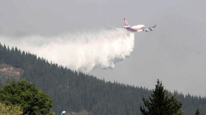 Также в Чили из США доставили гигантский "Boeing 747", который применяют для борьбы с лесными пожарами.
