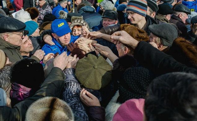 В Сети появилось видео, снятое в российском городе Киров. В ролике показано, как жители города давят друг друга, чтобы получить бесплатные подарки от политической партии ЛДПР.