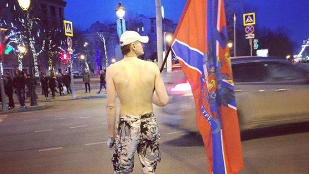 Вечером, 12 марта, в центре российской столицы разгуливал полуголый мужчина с флагом непризнанной "Новороссии".