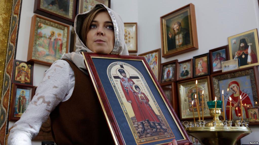 Вот кто тянул за язык незаконного депутата от оккупированной территории говорить ересь? Бюст Николая II, конечно, был открыт в присутствии священника, но объектом культа не является, поскольку находится не внутри прокурорской часовни, а подле нее. Да и с чего бы мироточить бронзовому изваянию в годовщину отречения, известно только бывшему "главному прокурору" Крыма Поклонской.