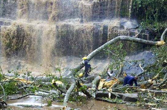 В Гане туристы и местные отдыхающие плавали в непогоду в водопаде. В результате бури рухнуло огромное дерево, которое придавило людей.