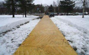 В Архангельске на днях состоится Арктический форум, в котором примет участие и президент Российской Федерации Владимир Путин. Местные власти до приезда руководства выложили 200-метровую паркетную дорожку по маршруту следования Путина. В частности, паркетная дорожка свяжет Морской речной вокзал и Северный (Арктический) федеральный университет.