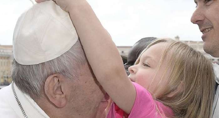В Ватикане произошел смешной инцидент с Папой Римским и маленькой девочкой, в результате которого он остался без своей шапочки – пилеолуса.