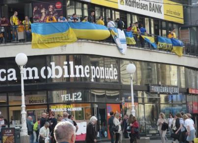 В Хорватии нашу сборную поддержало около 1000 человек, которые приехали из Украины и это не считая тех, кто работает в странах ЕС. В связи с запретом местной полиции провести марш перед игрой сборных, болельщики Украины провели небольшой флешмоб. На балконе бара "Ритам Града", где находится фан-посольство Украины в Хорватии, болельщики, развернув флаги Украины, спели припев знаменитой композиции группы "Ляпис Трубецкой" — "Воины света".