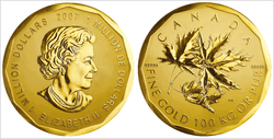 «Большой кленовый листок», как называют эту уникальную канадскую монету, отчеканен из чистого золота в 24 карата.
