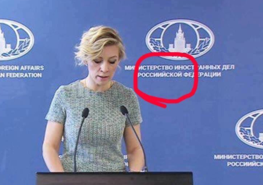 Захарова выступала на фоне баннера, на котором внимательные пользователи заметили лишнюю букву, передает Час Пик.