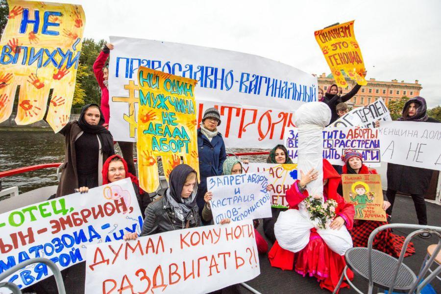 В воскресенье, 1 октября, в Санкт-Петербурге местные активисты провели «крестный ход» против мужской мастурбации. Они с плакатами в руках проплыли по рекам и каналам города, а после спустили на воду фигуру полового органа. Таким образом они спародировали реальный крестный ход, участники которого требуют запретить аборты в России.