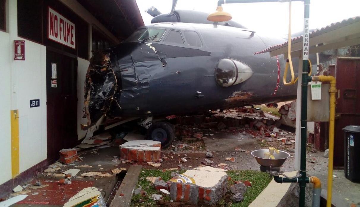 Cамолет Ан-32 вооруженных сил Перу врезался в полицейскую базу. Авария произошла в аэропорту Масамари. В сети появились кадры с места ЧП.
