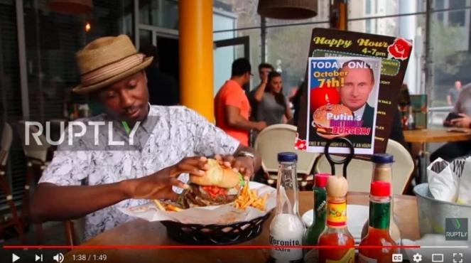 В сети начал распространятся видеоролик, на котором якобы сотрудница американского ресторана угощает людей бургером весом 1952 грамма. Женщина говорит, он был специально приготовлен в честь Путина, который родился в 1952 году. Спустя время заведение открестилось от проведения подобной акции, а само видео стало недоступным для пользователей.